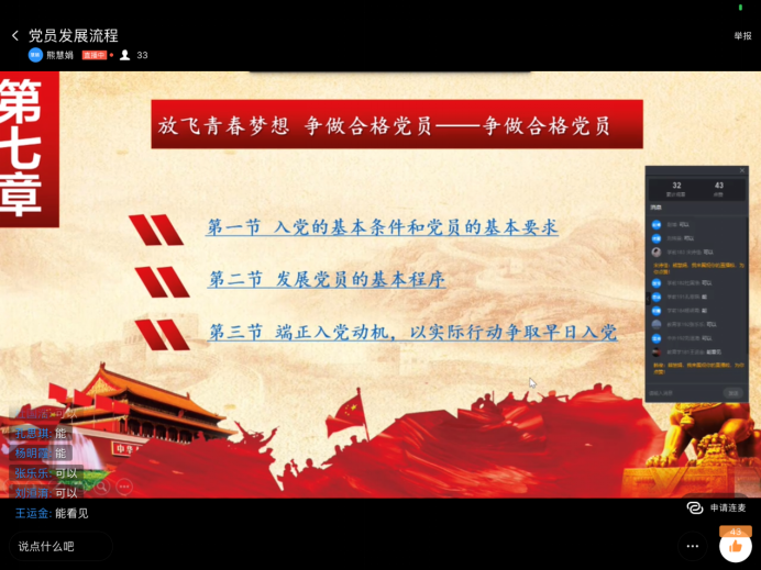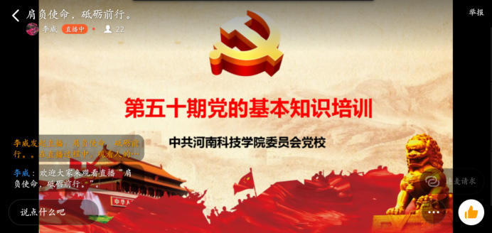 院正科级辅导员李威在《光荣使命,领航青春》《党的历史》《党的组织制度和党纪党风、中国共产党纪律处分条例》党课中让学员进一步了解党的历史,加强组织纪律性,严格要求自己。