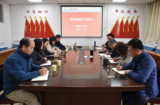 在零号楼十楼会议室召开会议,专题安排部署安全稳定工作,学院班子成员及科级以上干部参加会议。