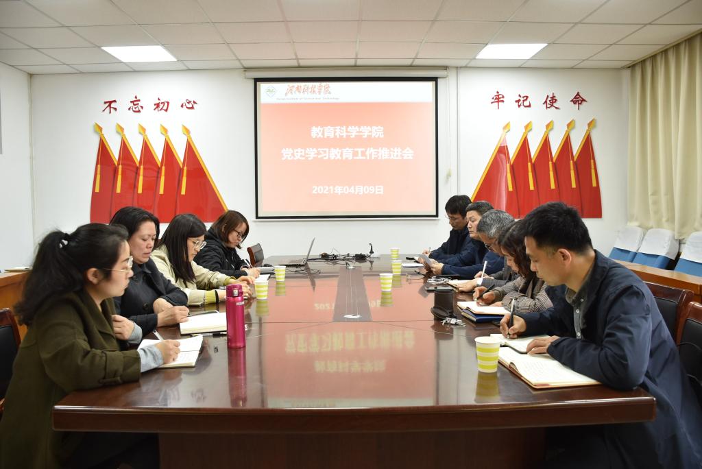 在零号楼十楼学院会议室召开党史学习教育工作推进会。院党委中心组成员、党支部书记、办公室主任及全体辅导员参加了会议。