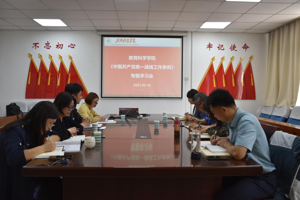 在零号楼十楼会议室召开《中国共产党统一战线工作条例》(以下简称《条例》)专题学习会议。学院班子成员、支部书记参加会议。会议由院党委副书记王鲁伟主持。