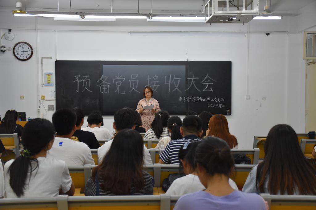学生第一、第二党支部在一号教学楼206教室召开预备党员接收大会。会议分别由学生第一党支部书记卢璐洁、第二党支部书记熊慧娟主持,学生第一、第二党支部全体党员、预备党员参加会议。