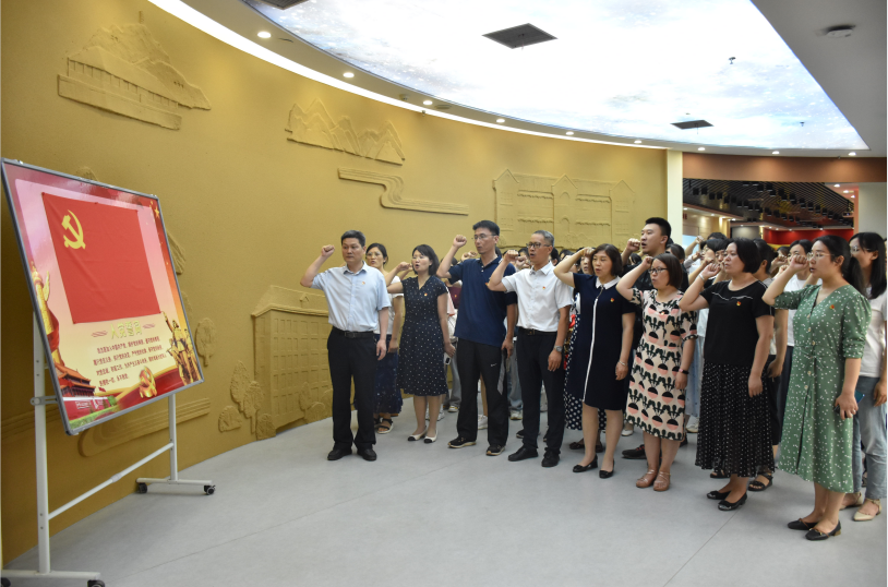 师生展现了学校前辈们一心向党、爱党爱校的情感和不畏苦难、积极进取的精神。随后,院党委书记张涛带领大家面相党旗庄严宣誓,全体预备党员宣誓,老党员重温入党誓词,党员们用铮铮誓言表达对党忠诚的决心及初心不改的坚定信念。
