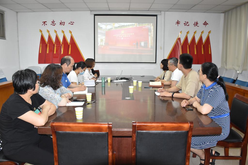 于零号楼十楼会议室组织全体教工党员收看“七一勋章”颁授仪式。