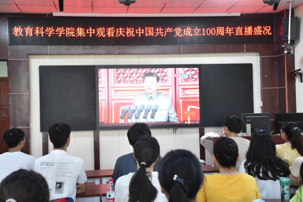与会师生怀着无比激动的心情,观看了直播盛况,认真聆听了习近平总书记的重要讲话。在讲话中,习近平总书记回顾了中国共产党领导中国人民走过的百年奋斗历程;向中国共产党人表示了崇高的敬意;明确提出了一百年来,我们取得的一切成就,是中国共产党人、中国人民、中华民族团结奋斗的结果。