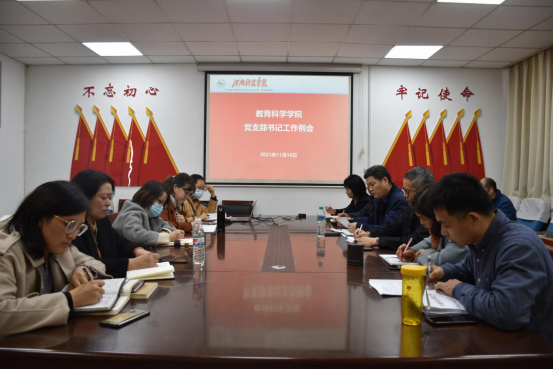 会上,张涛传达了校党委书记周志远在学校党史学习教育专题干部讲坛上的讲话精神和学校11-12月基层党建工作任务。结合学院实际,对学习贯彻党的“十九届六中全会精神”、迎接校内第四轮巡察工作、党史学习教育、党支部换届和“两化一创”等重点工作进行了安排部署。