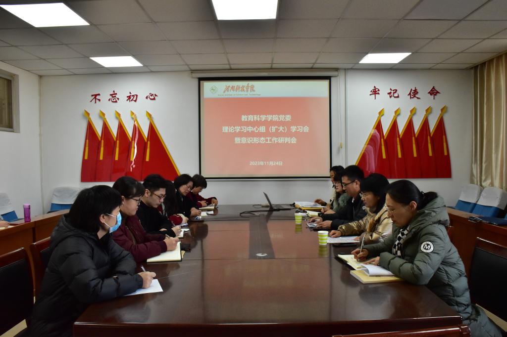 在0号楼1008会议室召开党委理论学习中心组(扩大)学习会暨意识形态工作研判会。学院党政班子成员、党支部书记,党务、教学、科研、研究生秘书,辅导员及教研室主任参加会议。