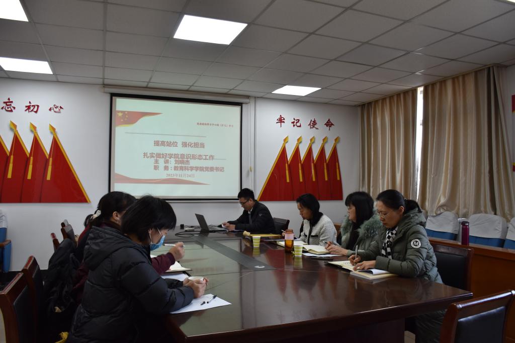 在集体研判环节,刘晓杰传达学校意识形态工作联席会会议精神,学院党委副书记李鹏、副院长刘秋云分别就本科学生管理和教学、科研、研究生管理方面的意识形态工作进行总结汇报,参会人员围绕课堂教学、教材选用、论文发表、社团管理等方面存在的问题进行研判,并提出改进措施。