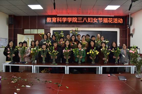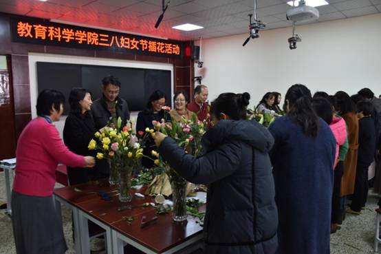 分工会在老图书馆四楼教学技能实训室组织开展了以“美丽教科·幸福如花”为主题的庆三八插花活动。学院党政领导和全体女教职工一起欢度节日。