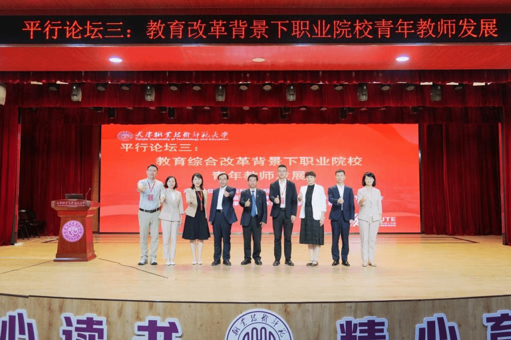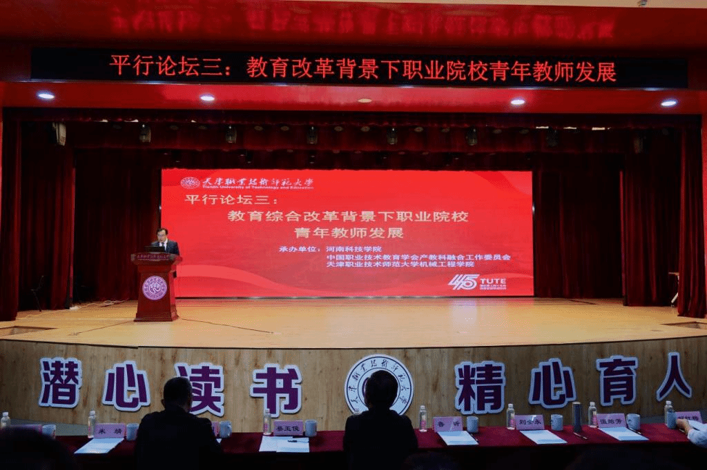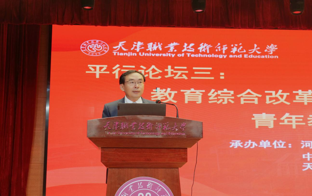 副校长刘全永,天津职业技术师范大学副校长蔡玉俊,职教师资专业委员会副主任委员、华东师范大学教育学部副主任匡瑛出席会议。来自普通高等院校、高职院校、相关企业的各界专家学者200余名代表参加了会议。